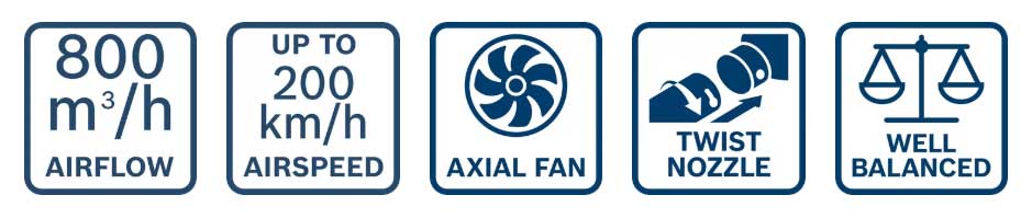 Denne blåseren er en del av Bosch Professional 18V System og flermerkebatterialliansen AMPShare, noe som gir fleksibilitet til å bruke samme batteri på tvers av ulike verktøy.