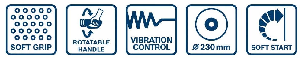 Dette er en vinkelsliper som er perfekt til sliping og skjæring av metall, stein og fliser, og den svært sterke GWS 27-230 JR Professional sørger for at krevende oppgaver kan fullføres raskere. Den er både er enkel å bruke og komfortabel. Kraftig 2700 W-motor som gjør at du kan fjerne mer materiale på kortere tid. Håndtaket kan dreies 90° med et trykk på en bryter. Du får perfekt grep – uansett om du sliper eller skjærer. Sliperen er utstyrt med en låsefunksjon som sørger for at den ikke kan starte før hovedhåndtaket er dreid 90° og låst med et klikk. GWS 27-230 JR Professional har KickBack Control og Vibration Control. Vinkelsliperen har gjenstartbeskyttelse, mykstart og praktisk vern uten nøkkel for sliping.